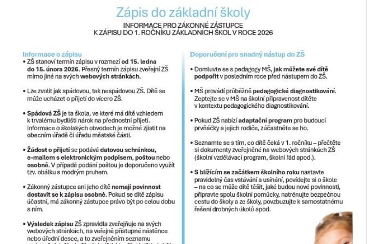 Informace k zápisu do základní školy 14.12.2025 Odklad-povinne-skolni-dochazky-pro-zakonne-zastupce.pdf Odklad-povinne-skolni-dochazky-pro-rodice.pdf Více informací